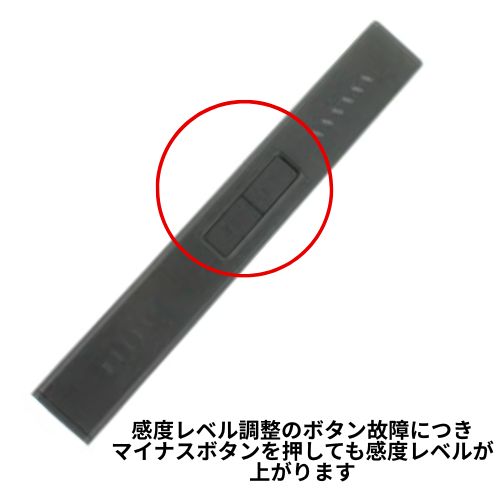 感度レベル調整をするマイナスボタンが正常に機能せず、マイナスボタンを押しても感度レベルが上がる仕様となっています。