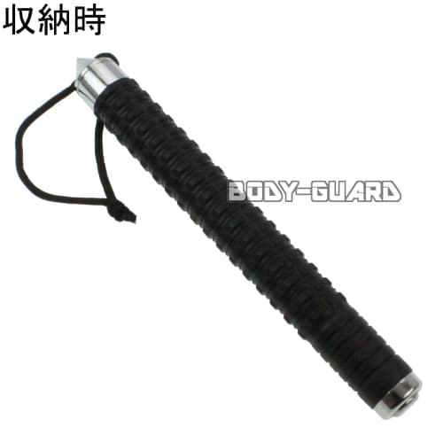 フリクションロック(摩擦ロック)式で、警棒を振って出し、硬い地面に叩きつけて収納します。