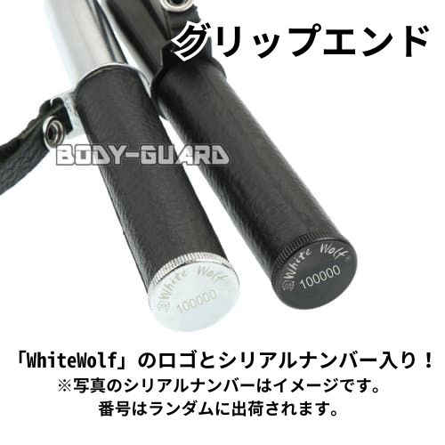 グリップエンドには「WhiteWolf」のロゴと、管理の際に役立つ「シリアルナンバー」が刻印されています。