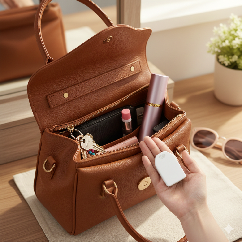 突然襲われたり、体調が急変した等、身の危険が差し迫った時に、omamolinkの入ったカバンを振ると、ブザーや録音、SOS発信などの機能が作動し、事前に登録している人へ、SOSを止めるまで約1分ごとに位置情報を通知することができます。
