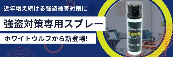 近年増える強盗被害への対策として新登場 – ホワイトウルフ 強盗対策専用スプレー