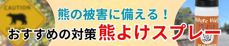 「熊よけスプレー」は、熊が近寄ってこないためのスプレーではなく、もしも熊が攻撃などしてきそうになったときに身を護るために噴射するスプレーです。攻撃の態勢に入った熊に対して素手やナイフで対応することはとても難しいです。スプレーは唐辛子成分を使用しており、その成分で熊に刺激を与え熊が退散したり苦しんでいるうちに逃げるための道具です。スプレー自体には殺傷力もありません。