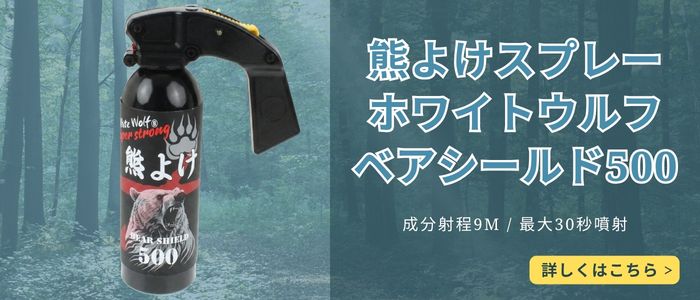 当店では、市街地や住宅地などの身近な場所での熊対策におすすめな「熊よけスプレー ホワイトウルフ ベアシールド60」を既に販売していますが、熊がより出没する可能性の高い山間や田舎でのご使用におすすめな大容量500ccの「熊よけスプレー ホワイトウルフ ベアシールド500」を新たに製作しました。