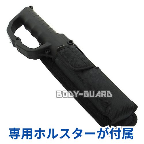 外観が警棒に似た形状になっており、相手との間合いを取ることができ、通電部分がシャフトの先端以外に側面にもあるため、奪われにくい構造になっています。