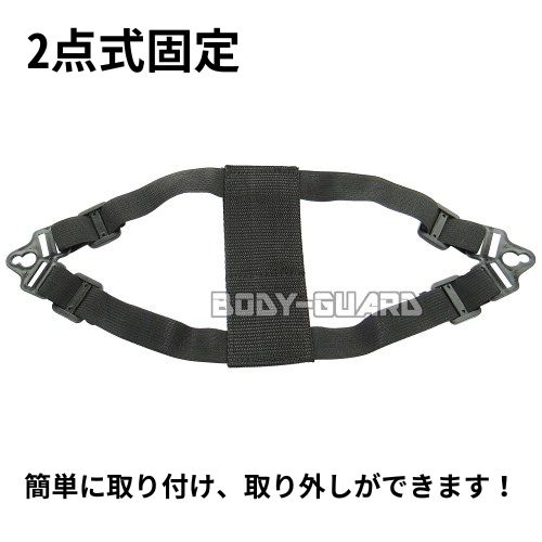 ゴム式2点固定、長さ調整可能な一般的な装着方式で、