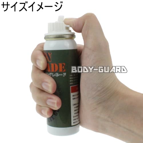 グレネードは、スプレー缶の上部のスプレートップを押し込むと中身が一気に噴射され、霧状に広がり、空間の中にいる暴漢の動きを抑制するという道具です。室内に暴漢が立てこもっているときなどに高い効果を発揮します。