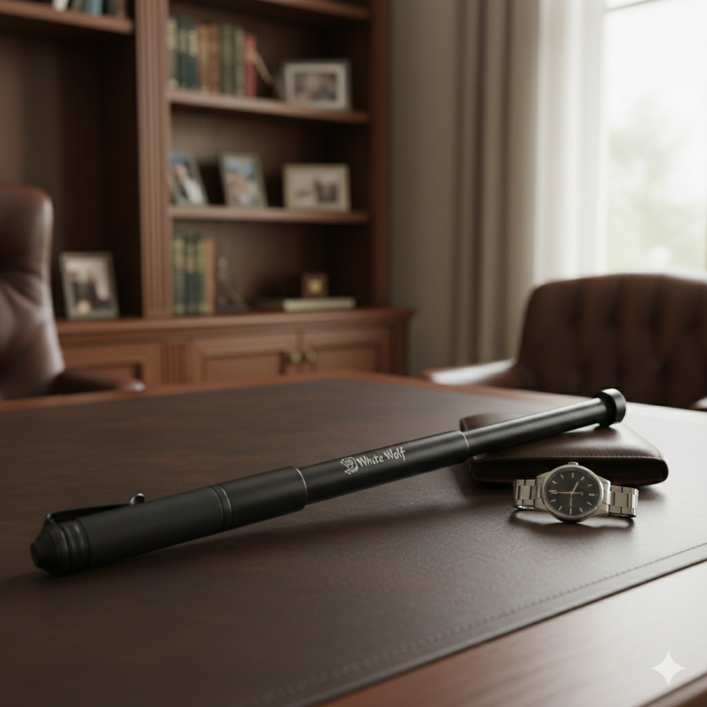 ホワイトウルフ 4140カスタムスチール 小型警棒 ガラス割り付き ブラック
