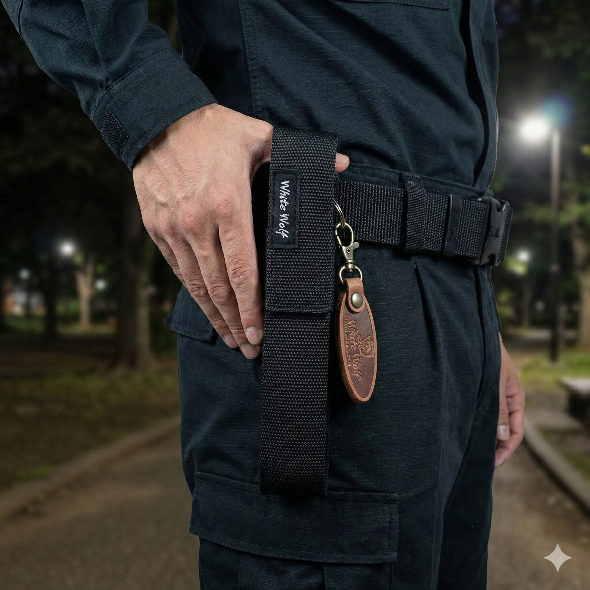 「ホワイトウルフ 4140カスタムスチール 小型警棒 ガラス割り付き ブラック」用に設計されていますので、サイズ感がピッタリです。