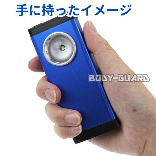 表面にLEDライトがついているのが特徴的なスタンガン!