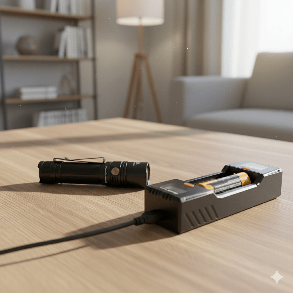 フラッシュライトで使用する事の多い18650等の充電池用の充電器です。