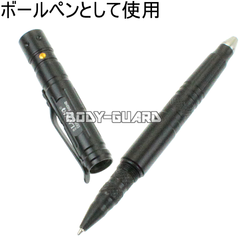 普段はボールペンとして使用できるほか、LEDライトやガラス割り機能も備えた多機能タクティカルペンです。