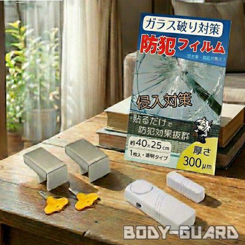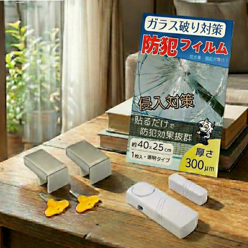 ガラスを割って侵入する空巣対策に!泥棒の侵入手口の7割以上がガラス破りと言われているそうです。ガラスに貼るだけで、ガラスが割れにくくなり侵入が困難になります。
