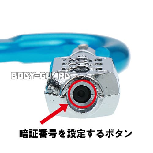 開閉部に3桁のダイヤルロックが搭載されているアルミ製カラビナです。