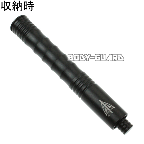 ボタン一つを使って簡単に収納出来るオートロック警棒です。