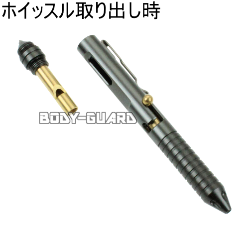 ボールペンとしての使用はもちろん、ガラス割りやホイッスルも内蔵されているので、