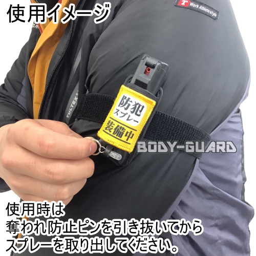 腕に直接装着するスタイルのため、緊急時でも迷わずスプレーを手に取れる即応性が魅力です。