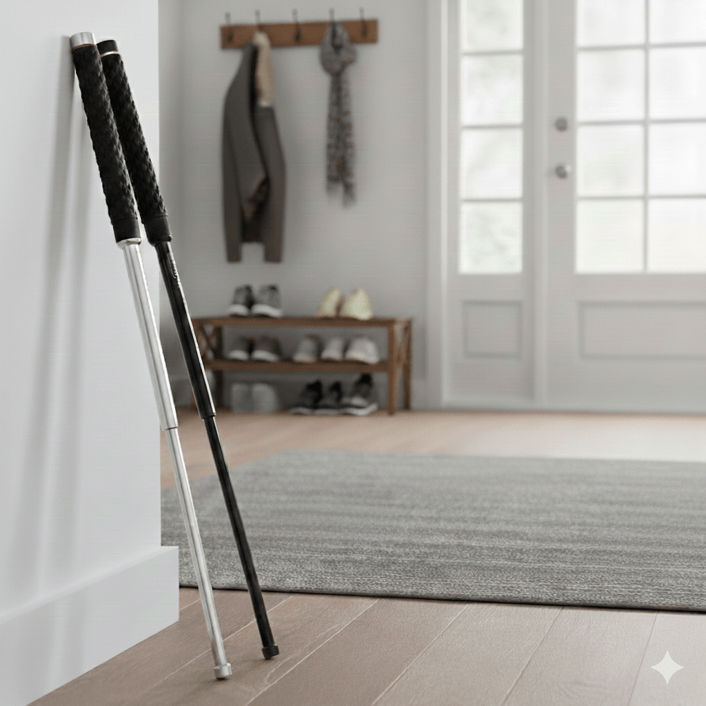 伸ばした時の長さが約65cmあるので、伸ばした状態で玄関や寝室などに置いておき、屋内での護身用として備えるのはもちろん、相手とのリーチ(距離)がとれるので屋外での護身用としてもご使用いただけます!