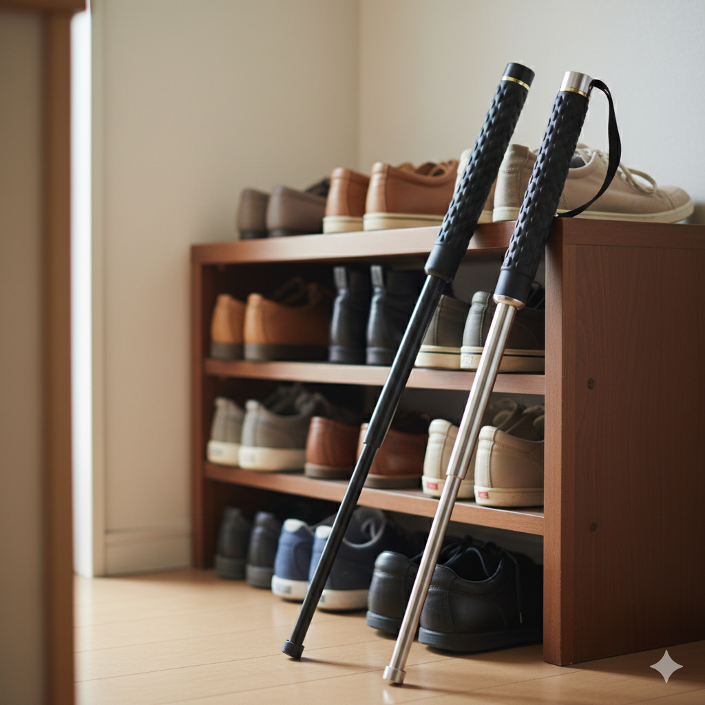 ※警棒を振って出し、硬い地面に叩きつけて収納するタイプ