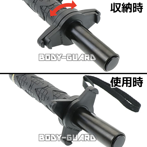 ※警棒を振って出し、硬い地面に叩きつけて収納するタイプ