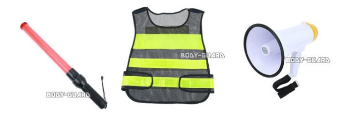 2号警備の常備品である保安指示灯・安全ベスト・メガホン・回転灯の他、施設保安等で活躍する金属探知機も扱っております。