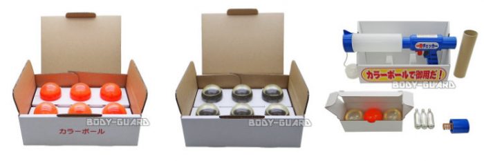 一般的な防犯カラーボールはもちろんのこと、施設内での実使用に適したバニラ香料の蛍光防犯カラーボール、炭酸ガスの力でカラーボールを発射するランチャーなど、訓練用水ボールを含めご提供いたします。